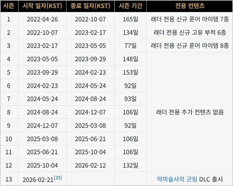 - 나무위키 - 래더 시즌 정보